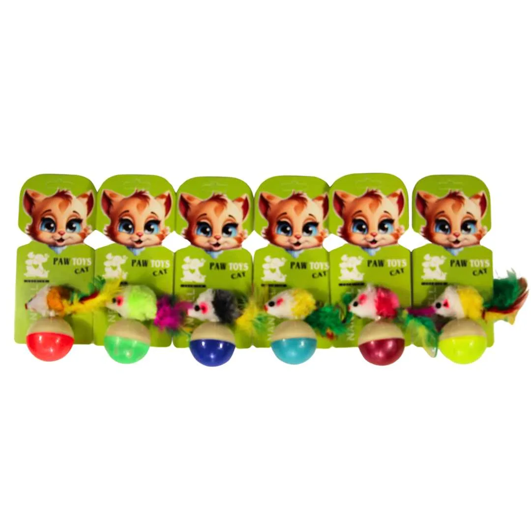 Nanbell Tüylü Fareli Zıplayan Top Kedi Oyuncağı – Renkli ve Etkileşimli Eğlence AO038